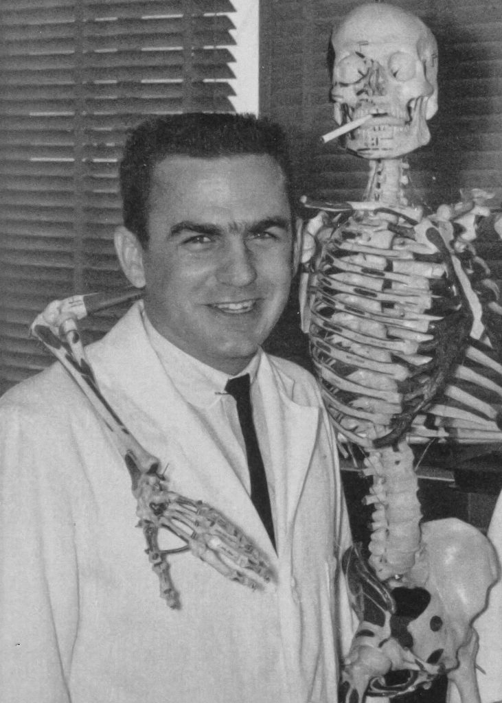 The next day in biochemistry lab I explained my problem to the student next to me, Eddie Sankary, as he and everyone else busied themselves pouring urine into shiny glass beakers for chemical analysis. I’d met Eddie early in the year on account of his wife, Lynny, who worked as a clerk in the library—I’d made a fool of myself with a prissy complaint that she talked too much and too loudly for me to study. In spite of my boorish behavior we became friends—we laugh about it to this day—so it was natural for me to ask him what I should do about my lack of a specimen. He volunteered to let me work on his specimen—we’d turn it in as a joint project, which we did.